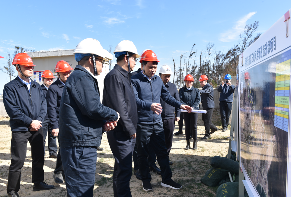 徐建平深入石井风电场#7风机现场,实地察看和了解陆上风电“以大代小”改造升级项目规划和前期工作推进情况,以及风电场生产运维、设备管理、安全环保等情况,并在石井风电场主持召开座谈会,听取相关工作汇报。