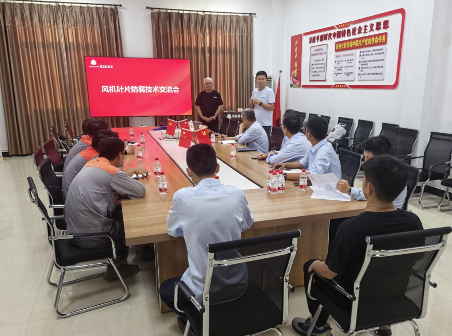 9月20日,公司特邀丹麦海虹老人公司叶片防腐专家到隆教风电场,就风电机组叶片前缘保养、日常维护、修复工艺等开展深入交流,进一步提升风机叶片的防腐性能,延长其使用寿命,减少叶片老化造成的能量损失,提高风电机组的发电效能。