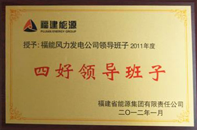 2012年1月,福能集团授予福建省福能风力发电有限公司领导班子2011年“四好领导班子”荣誉称号